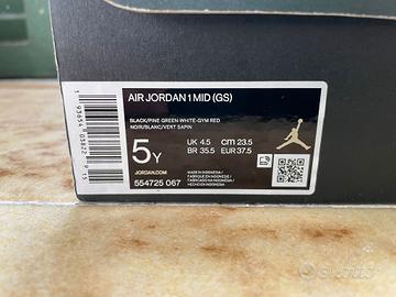 Jordan 1 mid green toe GS - nuove di pacco con cartellino - taglia 37.5 - tomaia in pelle verde, nera, bianca.