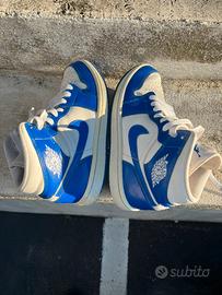 Scarpe usate originali ma in ottime condizioni, modello alto. - Design bicolore blu e bianco. - Logo iconico sul lato.