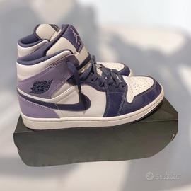 Le *Jordan 1 Mid Viola* sono una versione delle celebri *Air Jordan 1 Mid*, uno dei modelli più iconici nella storia delle scarpe da basket e della cultura sneaker. Questo modello unisce eleganza, comfort e una combinazione di colori che le rende uniche e accattivanti. Ecco una descrizione dettagliata: