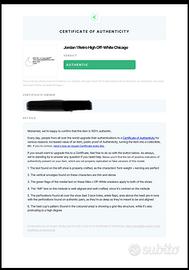 Jordan 1 Retro High Off-White Chicago - Size 10.5 - NEW/DS - AUTHENTICATED. In vendita Jordan 1 Retro High x Off-White nell'iconica colorazione "Chicago". CONDIZIONI: Le scarpe sono NUOVE, mai indossate (Deadstock). Come visibile dalle foto dettagliate, la suola è immacolata e la texture della soletta interna è perfetta, senza alcun segno di usura. ACCESSORI: * Set completo di lacci extra (Bianchi, Arancioni, Verdi) ancora sigillati. • Zip-tie rossa originale inclusa. • SCATOLA: Non presente (No Box). AUTENTICITÀ: Articolo verificato e certificato da "Legit Check By Ch". Il certificato digitale è incluso nelle foto. Stato dell'oggetto: • Condizioni: Nuove, mai indossate (Deadstock). • Dettaglio Soletta: Come visibile dalle foto macro, la texture a rilievo e i loghi sulla soletta sono intatti al 100%, a conferma del fatto che non sono mai state calzate. • Nota sui lacci: I lacci neri presentano una leggera usura sulla stampa "SHOELACES" dovuta esclusivamente al movimento dello sfregamento dei lacci negli occhielli . Tutti gli altri lacci (arancioni, verdi, bianchi) sono nuovi e mai montati. Il problema del laccio nero con la scritta "SHOELACES" che si rovina è un difetto comune e noto di questa collaborazione: il materiale dei lacci originali tende a perdere la stampa a causa dello sfregamento negli occhielli. I collezionisti esperti lo sanno, ma è fondamentale dichiararlo per correttezza.