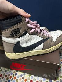 Entrambe le scarpe mostrano chiari segni di usura e non vengono lavate da un po’, ma in generale è tutto riprendibile con una pulizia e un buon restauro delle scarpe. Sono compresi anche scatola delle scarpe (con dentro carta rosa con loghi Cactus Jack) ed i lacci originali di diversi colori, tutti nelle buste, tranne quelli già applicati sulle scarpe. Suole danneggiate e solette da cambiare. Per altre foto o info contattare in dm. Prezzo leggermente trattabile, in quanto il paio nuovo tocca i 1500€ per la misura 43 EU.