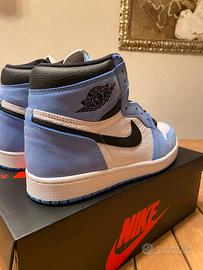 Jordan 1 University Blue Acquistate su SNKRS con ricevuta d’acquisto Indossate 3 volte Condizioni pari al nuovo Size 44,5/ US10.5