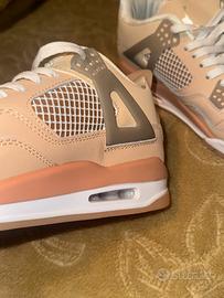 Scarpe Jordan 4 in colorazioni neutre con dettagli arancio.