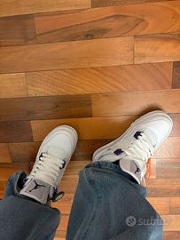 Jordan 4 bianche con dettagli viola metallico taglia 38, nuove con cartellino e certificato di autenticità, comprato numero sbagliato.