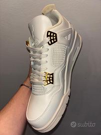 In vendita Air Jordan 4 Metallic Gold, una colorway raffinata ed esclusiva che porta la silhouette Jordan 4 a un livello superiore. Pulita, luminosa e impreziosita dai dettagli dorati: una sneaker che unisce streetwear e lusso in modo impeccabile.