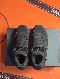 This Jordan 4 is composed of a black nubuck suede upper with matching detailing. Black hardware, netting, and outsoles complete the design.