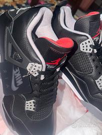 "Jordan 4 Retro Bred – Nuove, mai indossate (DS - Deadstock). 👟 Condizioni: 10/10, complete di box originale. Dettagli: La colorazione più amata di sempre. Tomaia nera di alta qualità, accenti Cement Grey e dettagli Fire Red. Ammortizzazione Air visibile e calzata perfetta. Garanzia: Un investimento sicuro per ogni collezione. Disponibile per spedizione immediata o consegna a mano." "Leggenda ai piedi. 👑 Le Jordan 4 Bred sono il perfetto equilibrio tra stile vintage e attitudine moderna. Il nero che sta bene su tutto, il rosso che non passa inosservato. Se ne devi avere solo una, deve essere questa. #Jordan4 #Bred #Sneakerhead"