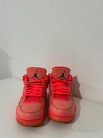 Vendo queste Jordan 4 Retro Hot Punch originali da donna, numero 38. Sono un modello super ricercato e particolare, con un colore rosa fluo acceso che le rende uniche e perfette per chi ama distinguersi. Le ho usate davvero pochissimo, infatti sono in ottime condizioni come si vede in foto: la pelle è ancora brillante, il colore è vivace e la suola è praticamente intatta.