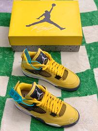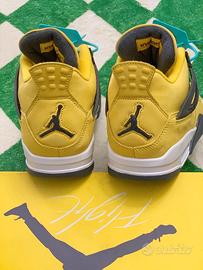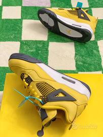 Originally released in 2006, the Air Jordan 4 Retro Lightning (2021) is one of the most renowned retro Jordan 4 colorways in Jordan Brand's catalog. It features a Tour Yellow Durabuck upper with black netted panels and dark grey eyelets. On the tongue, a black Jordan Flight logo patch with white and yellow accents complements the upper. From there, a Jumpman logo on the heel tab and white midsole with a visible Air unit completes the design.