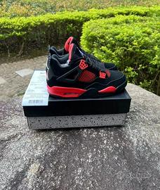 Jordan 4 Retro Red Thunder, nuove di zecca. In perfette condizioni. Il rosso è un tocco di stile. Perfette per gli amanti dello street style. Perfette per l'uso quotidiano e per le occasioni speciali. Comode e resistenti, sostengono i piedi durante l'attività fisica.