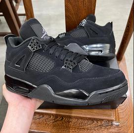 This Jordan 4 is composed of a black nubuck suede upper with matching detailing. Black hardware, netting, and outsoles complete the design.