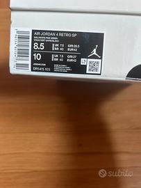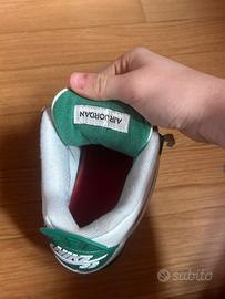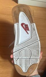 In vendita un paio di iconiche Air Jordan 4 Retro SB "Pine Green" , una delle collaborazioni più riuscite e ricercate tra Jordan Brand e Nike SB. Queste sneaker fondono l'estetica classica del basket con le necessità tecniche dello skateboard, offrendo un comfort superiore e una resistenza maggiore rispetto alle Jordan 4 standard. Dettagli del Prodotto: • Modello: Air Jordan 4 Retro SB • Colorazione: Summit White/Pine Green- Neutral Grey • Materiali: Tomaia in pelle bianca di alta qualità con dettagli in suede grigio sulla punta (toe box) per una maggiore protezione contro le abrasioni. • Caratteristiche Speciali: Suola in gomma "Gum" per un grip eccellente, intersuola con ammortizzazione Air visibile e loghi Nike SB sul tallone al posto del classico Jumpman o Nike Air. • Condizioni: Le scarpe sono in ottime condizioni generali, come visibile dalle foto. La pelle è ben mantenuta e i colori sono vividi. Presentano lievi segni di utilizzo naturale che non compromettono l'estetica o la struttura della scarpa. Incluso nell'acquisto: • Scatola Jordan Brand in condizioni eccellenti. Queste scarpe rappresentano un pezzo fondamentale per ogni collezionista o appassionato di streetwear. La silhouette della Jordan 4, unita alla palette cromatica verde pino e bianco, le rende estremamente versatili e facili da abbinare.