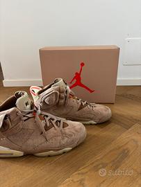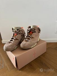 Vendo un paio di Jordan 6 x Travis Scott, numero 48.5. Le scarpe sono praticamente nuove: sono state indossate solo una volta per prova e sono in condizioni perfette.