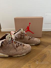 Vendo un paio di Jordan 6 x Travis Scott, numero 48.5. Le scarpe sono praticamente nuove: sono state indossate solo una volta per prova e sono in condizioni perfette.