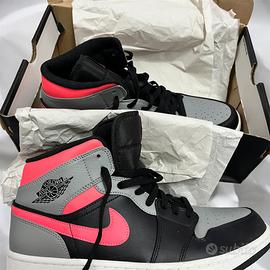 Queste iconiche Air Jordan 1 High OG Shadow Pink sono perfette per i collezionisti di streetwear e sneakerhead. Rilasciate nel 2020, combinano tomaia in pelle grigia premium con accenti rosa shocking sul collar e Swoosh, logo Jumpman nero e suola nera per un look audace e versatile.