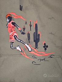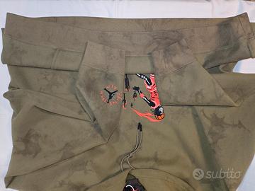 Modello: Jordan x Travis Scott "Cactus Jack" Pullover Hoodie Colore: Medium Olive (Effetto Lavato/Suede) Taglia: XXL (2XL) Codice Articolo: CN3422-222 Condizioni: Nuova, mai indossata, con cartellini originali (Deadstock). Dettagli dell'articolo: In vendita una delle collaborazioni più iconiche tra Jordan Brand e Travis Scott. La felpa si presenta in una splendida colorazione verde oliva con un particolare trattamento di lavaggio che le conferisce un aspetto "vissuto" e una texture morbidissima al tatto. Grafica: Ricamo frontale di alta qualità raffigurante uno scheletro in divisa da basket tra i cactus, simbolo della linea Cactus Jack. Dettagli aggiuntivi: Logo Jumpman e ricamo "Cactus Jack" sulla manica sinistra in rosso acceso. Qualità: Tessuto pesante (heavyweight cotton), cappuccio strutturato con lacci spessi e punte gommate. Autenticità: Prodotto originale al 100%. Il codice stile (CN3422-222) è visibile sull'etichetta interna per la verifica. Note del venditore: La felpa è perfetta, conservata in ambiente privo di fumo e animali. Le foto mostrano chiaramente la qualità dei ricami e l'integrità del tessuto. Un pezzo da collezione per ogni fan di La Flame e del brand Jordan.prezzo trattabile in chat.