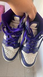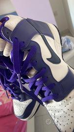 Le scarpe sono in ottime condizioni generali: la suola è pulita, la struttura è solida, e la colorazione viola è ancora vivace e accattivante. Presentano solo qualche piccolo segno di usura in punti minimi – niente di visibile a distanza o che rovini l’impatto visivo. Insomma, perfette per essere indossate con stile, senza compromessi.