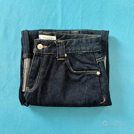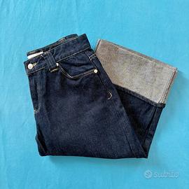 🇮🇹 Jorts blu scuro, 100% cotone, vita media, quattro tasche e passanti per cintura.