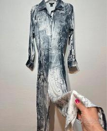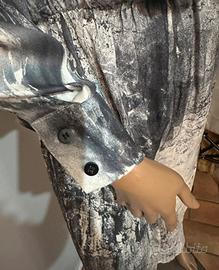 Meravigliosa tuta intera seta Avant Toi Fantasia marmorizzata sui toni del nero grigio e bianco Realizzata con meravigliosa seta fluida ed elegante con vita leggermente delineata chiusura con bottoni e colletto Avant Toi è noto per le sue tinture e lavorazioni che rendono ogni capo un opera d'arte Questa tuta è perfetta per chi ama distinguersi con uno stile contemporaneo e sofisticato, ideale sia per occasioni speciali che per un look chic e originale. Come nuova usata una volta veste 40/42 Giro seno 50×2 cm lunghezza 143 cm circa