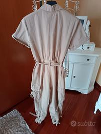 Jumpsuit beige Zara Parte superiore a camicia Parte inferiore modello cargo Con cinturini alle caviglie