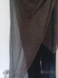 Jumpsuit in morbido tessuto, senza spalline, elastico al petto per il siategno, con drappeggi di tulle color bronzo, adatta per eventi e cerimonie. Tg. Unica