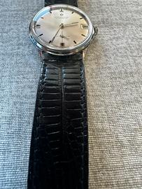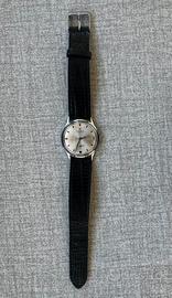Orologio meccanico a carica manuale. Junghans 31mm in più che buone condizioni. 17 rubini e 18.000 alternanze Cal. 620.12 germany, anno 1971. Completamente revisionato in data 3.3.2026 e precisissimo. Meccanismo pulitissimo. Complicazione con disco datario e piccoli secondi a ore 6. Eleganza vintage, leggerissimo e ultrapiatto (8.4) cassa 31 corona esclusa (33 con corona). Presenta leggeri segni del tempo sulla cassa e sul fondello. Quadrante argento perfetto e ripulito da specialista. Vetro nuovo. Cinturino in vera pelle stampa lucertola. Cofanetto aftermarket. Dichiaro che l’orologio è di mia proprieta ed originale.