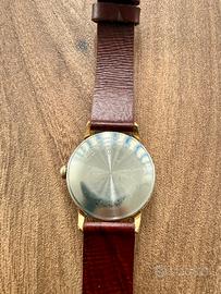 Vendo Junghans Trilastic vintage anni ’50, orologio meccanico a carica manuale con raro quadrante pie pan originale. Modello elegante e raffinato, tipico dell’orologeria tedesca del dopoguerra, adatto sia alla collezione sia all’uso quotidiano. Caratteristiche •Marca: Junghans •Linea: Trilastic •Epoca: anni ’50 •Movimento: meccanico a carica manuale •Quadrante: originale pie pan color champagne/oro, indici applicati •Cassa: placcata oro, buone condizioni con normali segni del tempo •Fondello: acciaio inox •Vetro: plexiglass •Diametro: circa 34–35 mm (senza corona) •Cinturino: nuovo, non originale L’orologio è funzionante e in buone condizioni generali per l’età. Non testato per impermeabilità (come da standard per orologi vintage). ⸻ Condizioni Quadrante molto ben conservato. Cassa con lievi segni d’uso coerenti con l’epoca (vedi foto dettagliate). ⸻ Altro •Vendita tra privati •Nessuna scatola o documenti •Spedizione tracciata oppure consegna a mano •Foto reali dell’orologio in vendita Preferito contatto da appassionati o collezionisti. Valuto proposte sensate.
