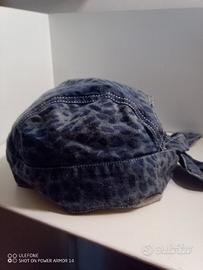 Bandana vintage in jeans leggero Just Cavalli autentica con stampa animalier