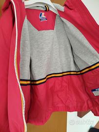 k-way originale bambina 8 anni jersey usato pochissimo pari al nuovo. caratteristiche: La giacca corta da bambina Lily completa i look quotidiani e offre una buona protezione durante il cambio di stagione. Il modello ha una linea slim ed essenziale e si caratterizza per l'esterno in poliestere con spalmatura impermeabile e antivento e la fodera in morbido jersey grigio melange che garantisce comfort, protezione e una sensazione piacevole a contatto con la pelle.. Tessuto nylon impermeabile, antivento, traspirante Tessuto fodera jersey Cuciture termonastrate Cappuccio non staccabile Chiusura con zip Polsi e bordo fondo con elastico 2 tasche con zip Taglio di ventilazione sul dietro Fitting slim Logo applicato colorato Caratteristiche Descrizione:Corta Genere:Bambina Stagione:Primavera, Estate Composizione Shell Fabric A External: 100% Poliestere Shell Fabric B External: 100% Poliuretanica Lining A: 35% Cotone, 65% Poliestere Lining B: 100% Nylon