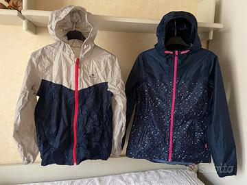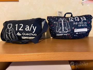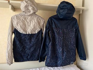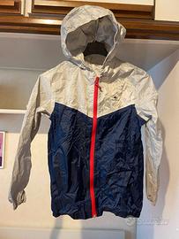 - K-way antivento "Decathlon" grigio e blu. Cerniera centrale, due tasche, elastico ai polsini, in vita e al cappuccio. Cintura elastica con moschettone per allacciarlo in vita.- Pari al nuovo.- Anni 12.- € 8.-