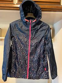 - K-way antivento "Decathlon" blu fantasia. Cerniera centrale, due tasche, elastico ai polsini, al cappuccio e in vita. - Pari al nuovo.- Anni 12/13.- € 8.-
