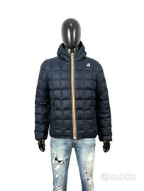 Piumino K-Way Double Face da uomo, modello bomber, con cappuccio. Presenta un design trapuntato e una zip frontale.