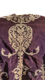 Raro esempio di Karakou algerino originale risalente ai primi anni del XX secolo, proveniente dalla tradizione sartoriale ottomana di Algeri. Il capo è realizzato in velluto pesante di alta qualità (colore bordeaux scuro/viola) ed è finemente decorato con ricami artigianali eseguiti a mano.