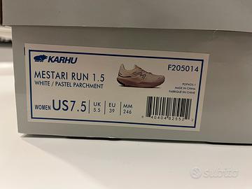 Vendo per numero sbagliato, paio di scarpe Karhu Mestari Run 1.5, usate solo poche ore perché corte DONNA MISURA US 7.5 EU 39 CM 24.6 comode sia per camminare in citta, che per correre.