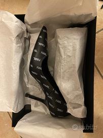 Karl Lagerfeld Scarpe tacco a spillo nere Con stampa nome in bianco, ecopelle, in ottime condizioni usate solo due volte.