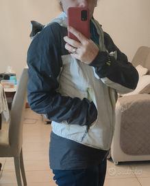 giacca antivento traspirante,tiene pioggia leggera,tg xs comoda anche sopra micropile o altre giacche leggere,cappuccio regolabile con frontino ,riponibile nel suo sacchetto colore grigio chiaro,nero.peso275gr.usato 2 volte.praticamente nuovo consegna a mano Padova