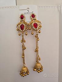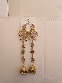 #italia #san bonifacio #kashmiri earrings #traditional #indian jewellery #gioielli Add a touch of timeless beauty to your look with these stunning Kashmiri Jhumka earrings. Inspired by the rich heritage of Kashmir, these earrings feature a classic bell-shaped design with intricate detailing that reflects fine craftsmanship. Crafted from high-quality metal with a beautiful antique finish, each pair is adorned with delicate patterns and graceful dangling beads that move elegantly with every step. The lightweight design ensures comfortable wear, making them perfect for long occasions. These jhumkas are ideal for weddings, festivals, and special events, and they pair beautifully with traditional outfits like sarees, lehengas, and salwar suits. Aggiungi un tocco di bellezza senza tempo al tuo look con questi splendidi orecchini Kashmiri Jhumka. Ispirati alla ricca tradizione del Kashmir, questi orecchini presentano un classico design a campanella con dettagli intricati che riflettono una raffinata lavorazione artigianale. Realizzati in metallo di alta qualità con una splendida finitura anticata, ogni paio è decorato con motivi delicati e graziose perline pendenti che si muovono elegantemente ad ogni passo. Il design leggero garantisce un comfort ottimale, rendendoli perfetti anche per essere indossati a lungo. Questi jhumka sono ideali per matrimoni, feste e occasioni speciali, e si abbinano perfettamente ad abiti tradizionali come sari, lehenga e salwar kameez.