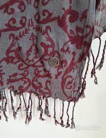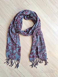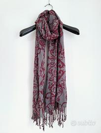 Sciarpa leggera in viscosa Notting Hill con frange, grigia con fantasia bordeaux. Usata solo una volta.