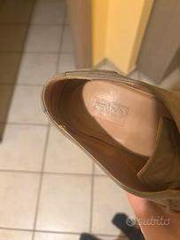 Vendo scarpe stringate originali Kenzo in pelle scamosciata beige/grigio, stile brogue con lavorazioni traforate.