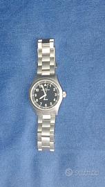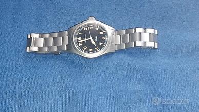 L'Hamilton Khaki Field Quartz 38mm (Ref. H69401131) è un orologio di ispirazione militare che unisce la robustezza storica del design Hamilton alla praticità di un movimento svizzero al quarzo. Specifiche Tecniche Principali Cassa: Realizzata in acciaio inossidabile con finitura sabbiata (bead-blasted) per un look opaco e utilitaristico. Dimensioni: Diametro di 38 mm, spessore sottile di 8,3 mm e distanza da ansa ad ansa (lug-to-lug) di 45,5 mm. Vetro: Vetro zaffiro antigraffio, che garantisce durabilità superiore rispetto ai vetri minerali. Movimento: Quarzo svizzero (Calibro ETA F06.105), noto per precisione e affidabilità. Include la funzione EOL (End of Life) che avvisa quando la batteria è scarica facendo scattare la lancetta dei secondi ogni 4 secondi. Impermeabilità: Resistente fino a 5 bar (50 metri), adatto per l'uso quotidiano ma non per immersioni profonde. Quadrante e Lancette: Quadrante nero opaco con numeri arabi in grassetto e indici trattati con Super-LumiNova per un'ottima leggibilità notturna. Orologio pari al nuovo acquistato a gennaio 2026, indossato solo per aggiustare la misura del bracciale, vendo per inutilizzo con doppia scatola originale, card garanzia ufficiale e maglie aggiuntive del bracciale....le foto sono parte integrante della descrizione e della vendita, visto e piaciuto, no reso no perditempo con offerte ridicole, prezzo non trattabile.