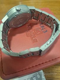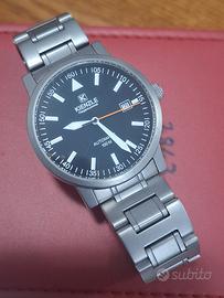 Orologio aviatore movimento automatico Miyota con datario.cassa diametro 39 .Fondo e corona a vite. Cinturino in acciaio originale . W.r. 10 ATM. Alcuni segni di normale utilizzo. Dotato di scatola e documentazione originali