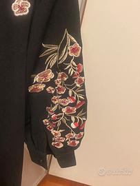 Vendo Kimono da donna nero taglia 42, molto elegante, con motivi floreali ricamati e maniche altezza gomito con bottoncino modello palloncino, nuovo