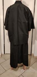 Kimono giapponese da uomo, colore nero composto da tre pezzi: gomma-pantalone, smanicato e casacca. Produzione artigianale, taglia M-L. Usato raramente, tenuto in condizioni ottime.