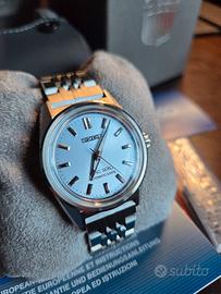 Vendo da collezione privata per nuovo progetto Meraviglioso King Seiko Automatic 36mm Ref SPB457J1 Settembre 2024 Condizioni estetiche e funzionali da negozio Listino 2000 € Annuncio anche su Chrono 24 Sotto un vetro zaffiro a scatola, si trova un quadrante azzurro chiaro, con lancette affilate in stile Dauphine. Gli indici tagliati tridimensionalmente, una cassa angolare e affilata e la finitura assicurano la massima riflessione della luce.. Alimentato da un movimento automatico in-house 6R51, questo orologio è preciso e con una riserva di carica di tre giorni. calibro: 6R51 tipo di movimento: automatico con capacità di carica manuale riserva di carica: circa 72 ore (3 giorni) Preferisco monetizzare, ma valuto permute dare e avere : Squale, Tudor, Oris, Hamilton, Sinn, Tag Heuer, Omega, Tissot, Vulcain, Seiko, King Seiko,Breitling NO VINTAGE, e solo full set Non utilizzo Tutto Subito Spedizione tracciata ovunque ovunque con DHL Express o UPS dopo bonifico bancario o ritiro in zona ovest di Milano
