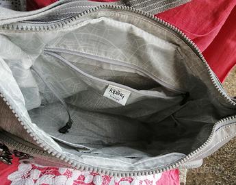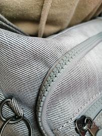 Collezione Classics. Modello Gabbie. Colore indicato dal Produttore "Grey Beige Peppery"(grigio chiaro, impercettibilmente punteggiato di beige). All'interno: uno scomparto con 3 tasche aperte (di cui 1 per penna) ed 1 chiusa con cerniera, laccetto con moschettone per chiavi. All'esterno: 1 scomparto anteriore suddivisoi due parti entrambe con cerniera, 1 scomparto posteriore con cerniera, 1 scomparto con cerniera su ognuno dei due lati. Chiusura con cerniera. Spaziosa, robusta, lavabile. Fondo rinforzato. Misure ( mm +-) : larghezza massima da cucitura a cucitura 29cm ; altezza massima da cucitura del fondo a cerniera 27cm ; spessore da cucitura a cucitura 15cm. Tracolla larga 3cm, regolabile da un minimo di 66cm ad un massimo di 124cm. Rifiniture in metallo color bronzo, Logo rotondo sul lato anteriore, alla linguetta di ogni cerniera e sulla fibbia della tracolla. Etichetta e Marchio di Garanzia all'interno. Scimmietta portachiavi anch'essa color bronzo.