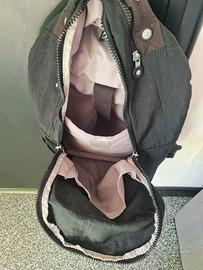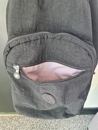 Kipling zaino originale nero, dimensione grande, con diverse tasche, chiusure tutte funzionanti, scomparto porta pc all'interno. Modello vintage, usato tanto perché molto comodo e funzionale, ancora in buono stato. Nell'ultima foto un segno di usura sulla maniglia superiore.