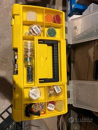 Ricchissimo con tantissime perle ( anche in vere pietre), ganci, catene, attrezzi per creare bijotteria. Come nuovo.