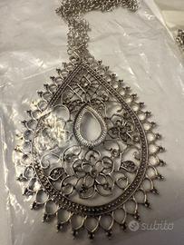 - Collana con pendente a forma di goccia traforata.