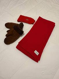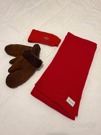 Sciarpa originale Benetton, fascia frontale originale Lacoste, manopole taglia L in camoscio.