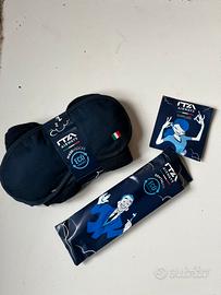 Esclusivo set di comfort aereo fornito da ITA Airways. Contenuto del set: Include una mascherina per gli occhi, un paio di calzini morbidi, tappi per le orecchie e un kit dentale. Caratteristiche: Tutti gli articoli sono nuovi, mai usati e provengono direttamente dalla compagnia aerea. Eco-Friendly: Gli articoli sono etichettati come "ECO FRIENDLY". Design: Presentano il logo e i colori distintivi di ITA Airways, con la bandiera italiana sulla mascherina. Perfetto per i collezionisti di articoli aerei o per chi cerca comfort e relax durante i propri spostamenti.